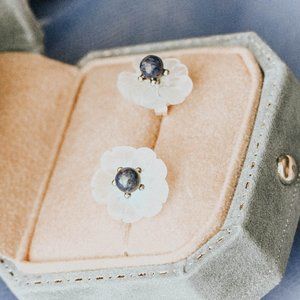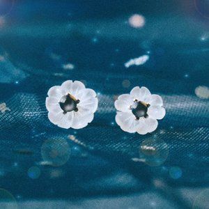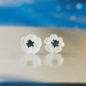 Sterling Silver Natural Lapis lazuli Flower Earrings Studs Nature Jewelry