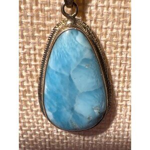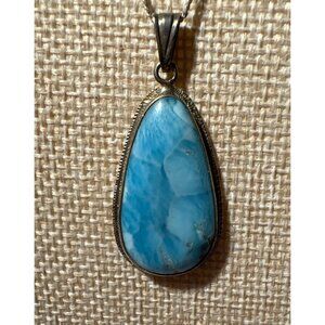 Sterling Silver Necklace & Larimar Pendand Teardrop Gemstone 18" Chain Italy