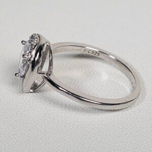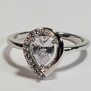 Sterling Silver Pear-Shaped Halo Ring (Size 6.75 - 7)