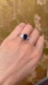 This stunning women's ring in size 8, features a captivating blue stone with shiny CZ’s. Reminiscent of Princess Diana’s sapphire ring. Set in a sleek sterling silver band. Oval center stone measures approximately 0.9cm x 1cm. Perfect for adding a touch of elegance to any outfit. Hallmarked sterling silver.