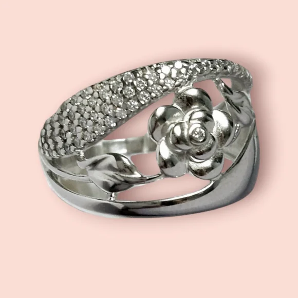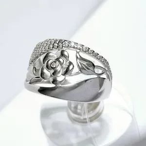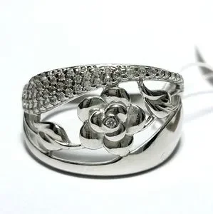 New Sterling Silver ring by Sokolov, width 13.0 mm, marked 925. Weight 3.09 gr made with white cubic zirconia. Ring size 7.5