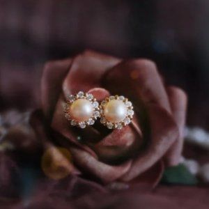 Floral Earrings/Pearl Earrings Studs/Genuine cultured freshwater earrings