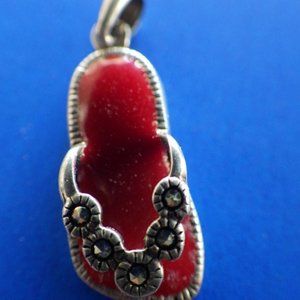 Sterling Silver Red Enamel Flip Flop Charm Pendant