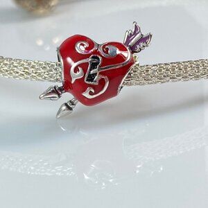 Has Cupid left his quiver of arrows somewhere? Well, we've found it. This gorgeous charm is enamel red with beautiful scrollwork and tiny arrows struck through it.