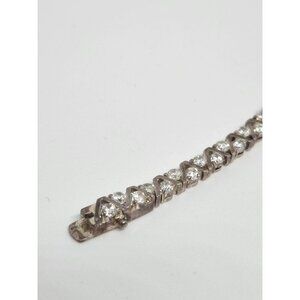 Sterling Silver Rhinestone Tennis Bracelet Vtg V Chevron Setting Hallmarked 7"