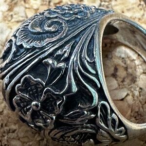 Exquisite one of a kind domed shaped sterling silver ring