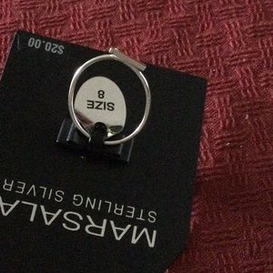 Thin sterling silver ring with small cubic zirconia inset in bar. Size 8.