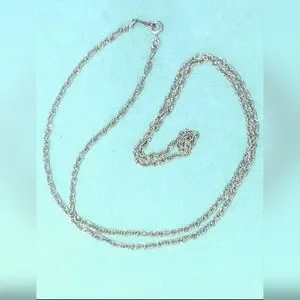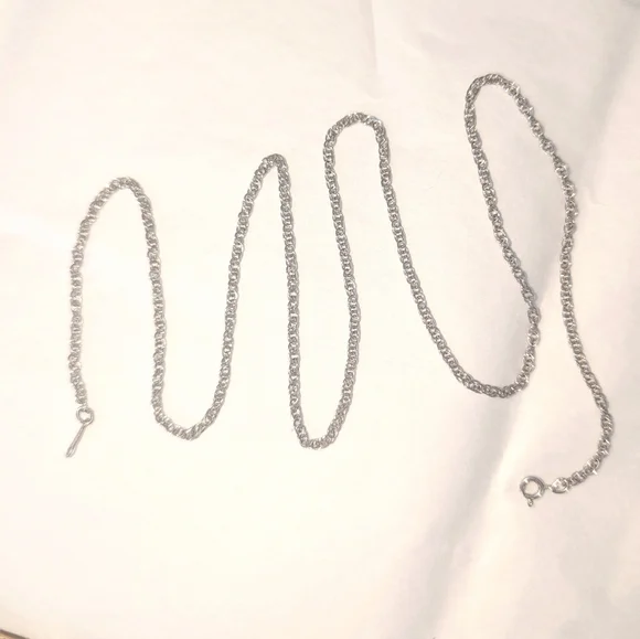 This fine 24" sterling chain is pretty on its own or with the addition of a locket or a charm (see my closet for possibilities). Manufactured by Corp. The chain weighs 4 grams.