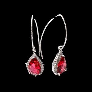 Sterling Silver Ruby Earrings – Rhodium-Plated Silver. Gift-ready Handmade