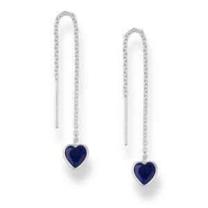 Sterling Silver Sapphire Cubic Zirconia Heart Threader Earrings