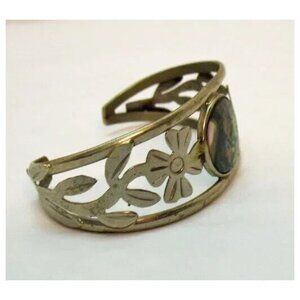Sterling Silver Signed Mexico Vintage abalone Flower Vine Cuff Bracelet
