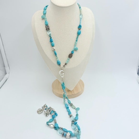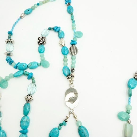 This Western-style necklace features faux turquoise howlite beads accented with sterling silver for a bold Southwestern look. Perfect for country concerts, rodeos, or everyday wear, it combines rustic charm with classic elegance.