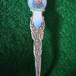 Enamelled Handle with Portrait depicts Princess Angeline, eldest daughter of Chief Seattle.