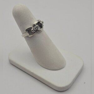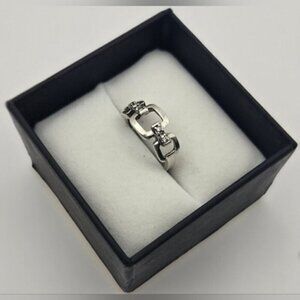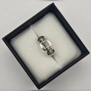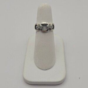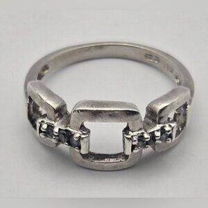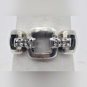 Sterling Silver Square Link with Crystal Gemstones Ring. the ring is in good use condition, very minimal surface scratches.