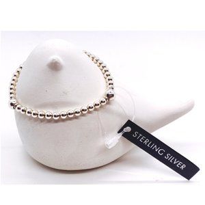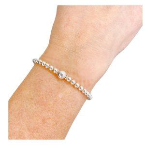 This stunning .925 Sterling Silver stretch beaded bracelet is made of alternating 4mm and three 7mm focal beads. Perfect for wearing alone or stacked with other bracelets for the trendy arm party look. These sterling silver bracelets make terrific gifts.