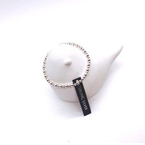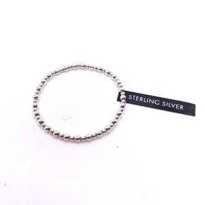 This stunning stretch .925 silver beaded bracelet is made of alternating 3mm and 4mm beads, and is perfect for wearing separately or as part of a stacking set. These sterling silver bracelets make terrific gifts or pieces of bridal jewelry. 7" in diameter fits most wrist sizes