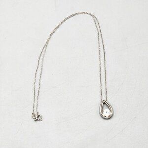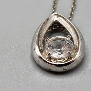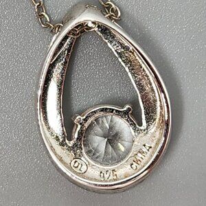 Sterling silver teardrop pendant necklace with a cubic zirconia accent. The pendant is stamped "DL 925 China", the chain is stamped "925 Italy". The necklace measures about 18" in length and weighs 2.3g. In excellent condition, please review photos closely.