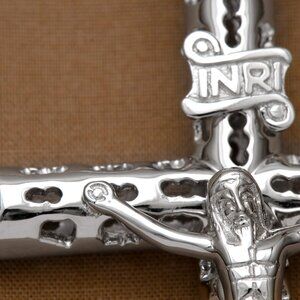 This beautifully crafted sterling silver crucifix necklace features a detailed Jesus Christ cross pendant.