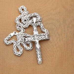 Sterling Silver Thick Heavy Meticulously Crafted Crucifix Necklace, Stamped 925