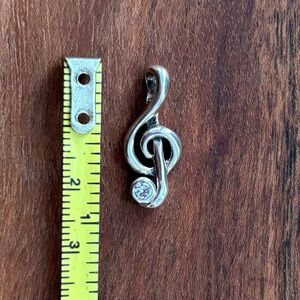 This elegant silver treble clef pendant is perfect for music lovers. Its sleek design adds a touch of sophistication to any outfit. Made in Indonesia with 925 Sterling Silver and set with a round cubic zirconia. NWOT
