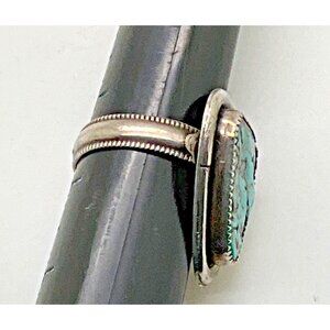 Sterling Silver Turquoise Men's Ring Bezel Set Southwestern Size 11.5