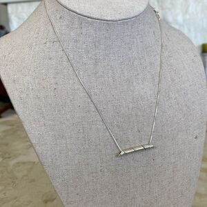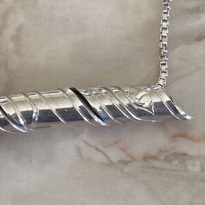 New, without tags, lovely sterling silver pendant lightly hand carved by Coast Salish artist Gilbert Pat featuring a Raven design. Hanging from a sterling silver 18” box chain.