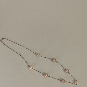 Pretty, freshwater pearl necklace with 7 pearls set in a box chain, sterling silver chain.