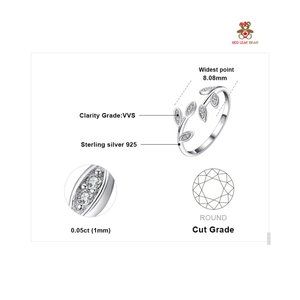 Sterling Silver adjustable leaf CZ Ring.