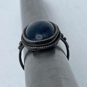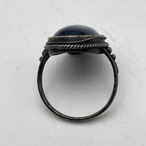 Sterling Steel Oval Shape Blue Gemstone Black Onyx Rope Cabochon Finger Ring