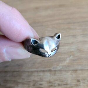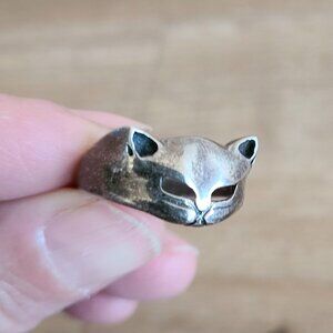 Sterling silver cat or cheetah ring. Stamped 925 silver unisex jewelry.