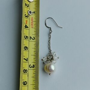 Sterling silver crystal dangle drop earrings white freshwater pearl 🆕