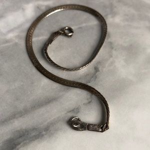 Flat weave herringbone with one bent area as photographed, doesn’t affect wear. 7”