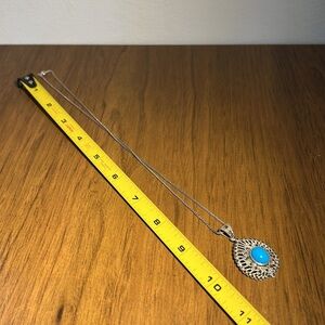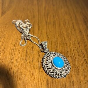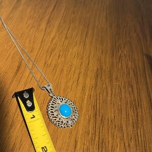 Sterling silver pendant w/ blue stone sterling silver chain 925 marked vintage