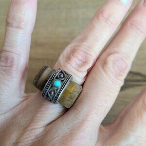Sterling silver ring with Tiger eye stone and Turquoise.