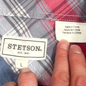 Stetson Chambray Western Pearl Snap Blue L/S Button Shirt Mens Large