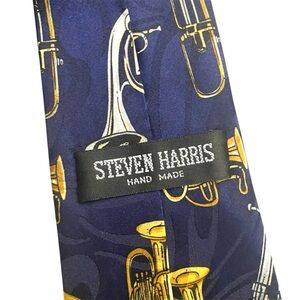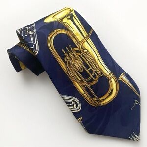 Steve Harris Men’s Blue Tie Trumpet Trombone Tuba Horns Music Band Theme Whimsy