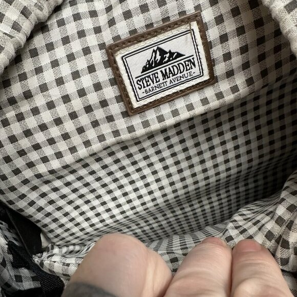 Steve Madden Barnett Avenue Travel Backpack Black Fabric Brown Leather READ