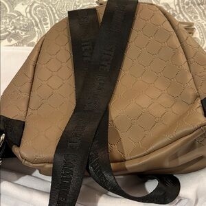 🎒Chic beige mini backpack with logo interior. 🎒Features zipper pocket and adjustable straps.