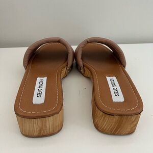 Step into style in Steve Madden's BELONG, featuring a wood-like block heel, single strap, and small gold details.