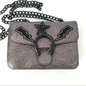 Steve Madden glitter purse with black chain adjustable crossbody strap, lightning bolts, and gem star.