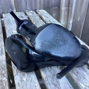 Steve Madden black heels. Please see small flaw in picture where one shoe sole has lifted slightly from the footbed. Otherwise great shoes in good condition.