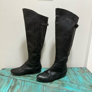Steve Madden Black Leather Buckle Cher Boots Zipper Back Size 8B