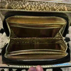 Steve Madden Black Mini Purse Chain And Faux Leather Strap Animal Print Inside