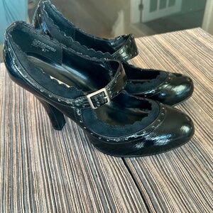 Steve Madden Black Patent Leather Mary Jane Heels with Scalloped Edges Size 9.5