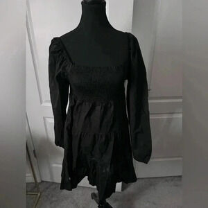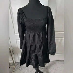 Steve Madden | Black Smocked Puff Sleeved Peasant Mini Dress | Size M [24]