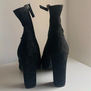 Steve Madden Black Suede 4-Inch Booties With Rose Detailing