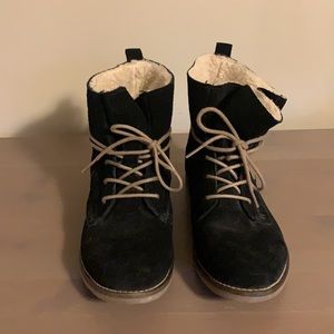 EUC Steve Madden “Anabel” black suede Sherpa booties with rubber soles in women’s size thirty nine (39).