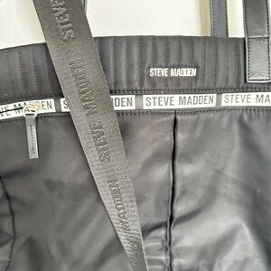 Steve Madden Womens Travel Bag Large Tote Black 100% Polyester Leather Strap