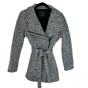 Steve Madden Black & White Salt & Pepper Heathered Belted Coat SZ Medium