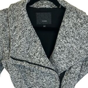 Steve Madden Black & White Salt & Pepper Heathered Belted Coat SZ Medium